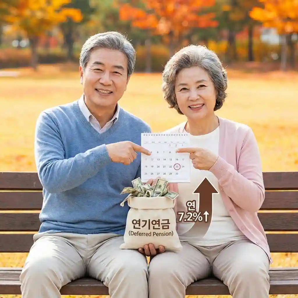- 확실한 수익률 (연 7.2%): 1년 미룰 때마다 연금액이 연 7.2%씩 불어납니다. 5년을 꽉 채워 연기하면 무려 36%가 인상된 금액을 평생 받습니다.